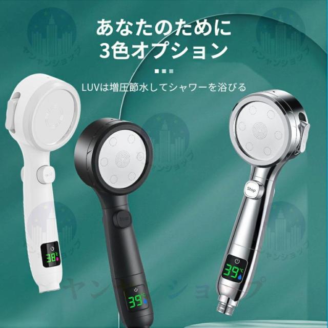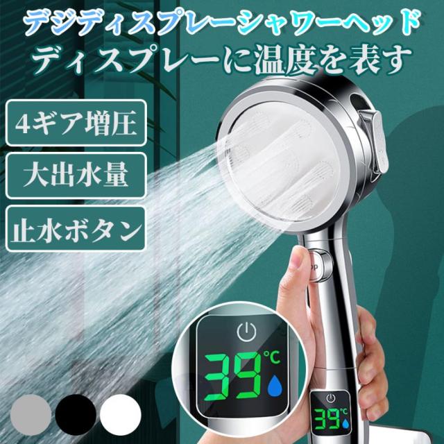 シャワーヘッド 節水80% 4段階モード 増圧 リアルタイムの温度表示 ミスト 美容 美肌 保湿 ホルダー 取付簡単 水漏れ防止 頭皮ケア 汚れ除去 2025