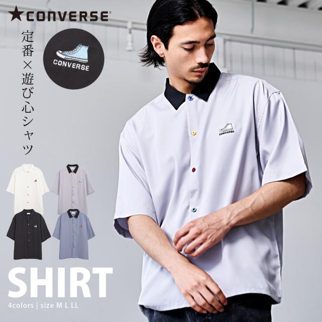 シャツ メンズ 半袖 半袖シャツ CONVERSE コンバース ブランド おしゃれ 大きいサイズ トップス 羽織 カジュアルシャツ レギュラーカラー ロゴ 刺繍 ワンポイント 無地 オーバーサイズ ゆったり ホワイト グレー ブラック サックス 白 黒 服 春 夏 春服 夏服 [5270-5084]