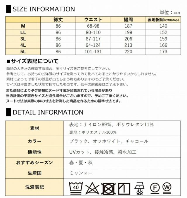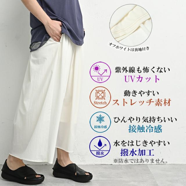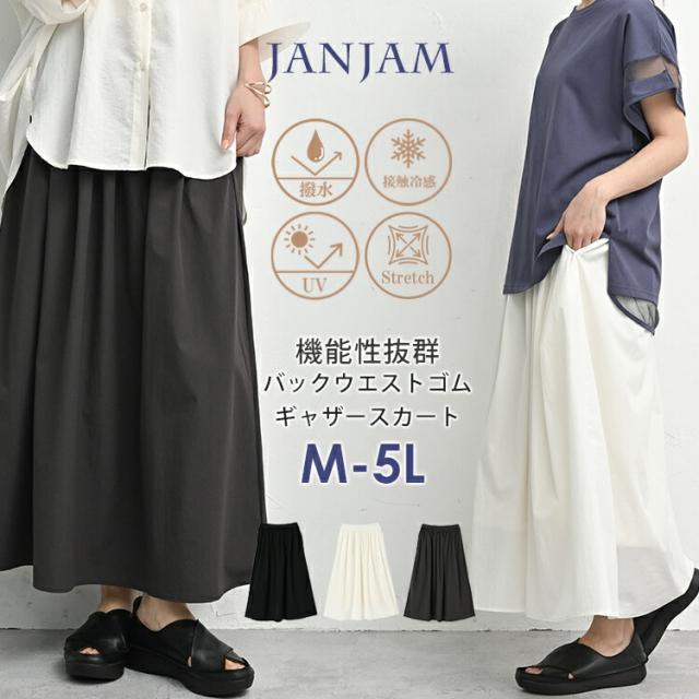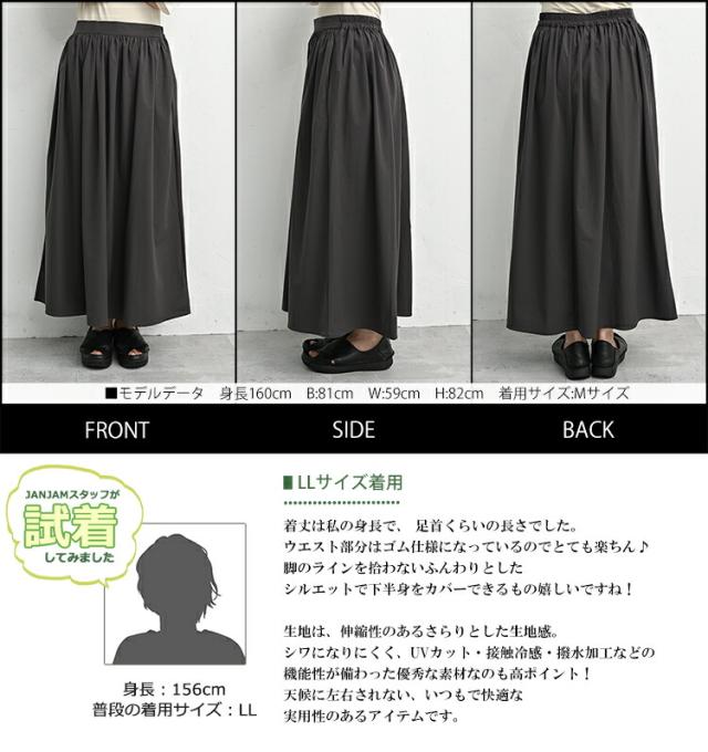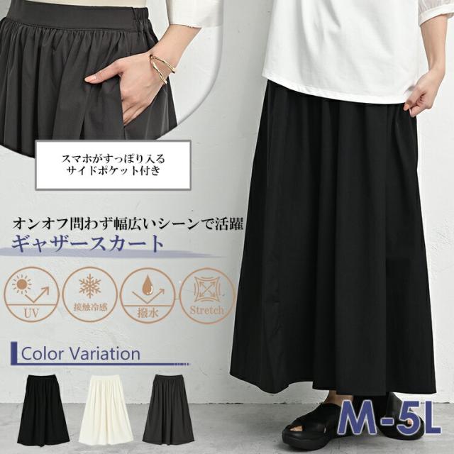 大きいサイズ レディース ギャザースカート メール便対応 ロング丈 ウエストゴム 接触冷感 撥水 ハジクション UVカット ボトムス UVSS M/LL/3L/4L/5L ゆったりサイズ ぽっちゃり女子 プラスサイズ