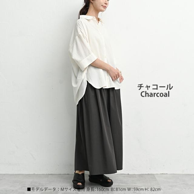 雨の日コーデにもオススメ♪ 撥水ギャザースカート。 フロントはすっきりとしたウエストライン バックはウエストゴム仕様で穿き心地を重視。 涼しく着用できる接触冷感生地と UVカット加工で機能性に優れたボトムスです。 |