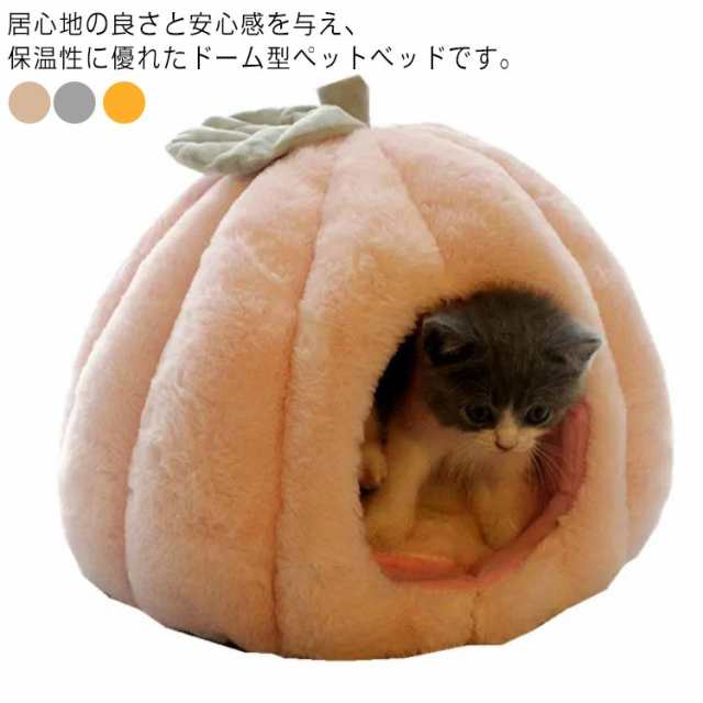 猫 ベッド 小型犬 ペットベッド カボチャ型 ハウス Mサイズ 猫ハウス ドーム型 かわいい 柔らかい 暖かい ふわふわ もこもこ 滑り止め クッションマット付き 洗える おしゃれ ネコ 猫用 保温防寒 通年