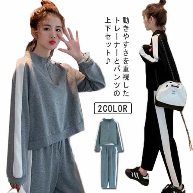 | 動きやすさを重視したトレーナーとパンツの上下セット♪ 首元がゆったりしていて、締め付け感がなく着心地抜群◎ 肩口と太腿サイドに入るラインがデザインをしゅっと引き締めてオシャレな雰囲気に♪ 「ちょっとそこまで」の、ワンマイルウェアやジム通い、ジョギングなどに♪ スポーツウェアとして使うのはもちろん、自宅などでフラット着れるルームウェアとしても使える! | |