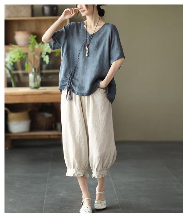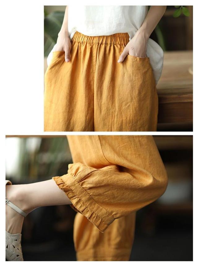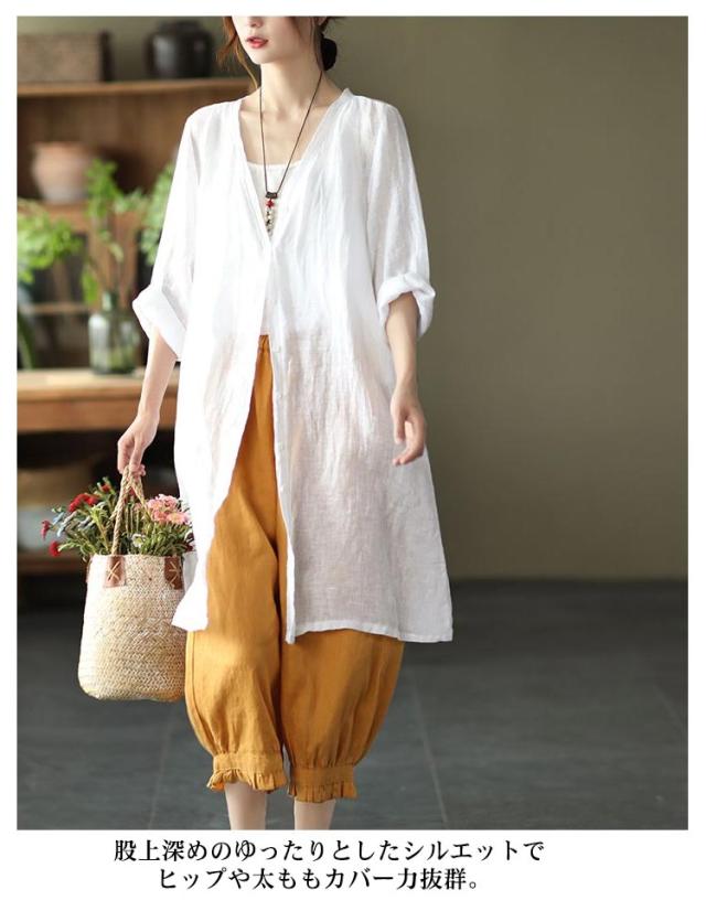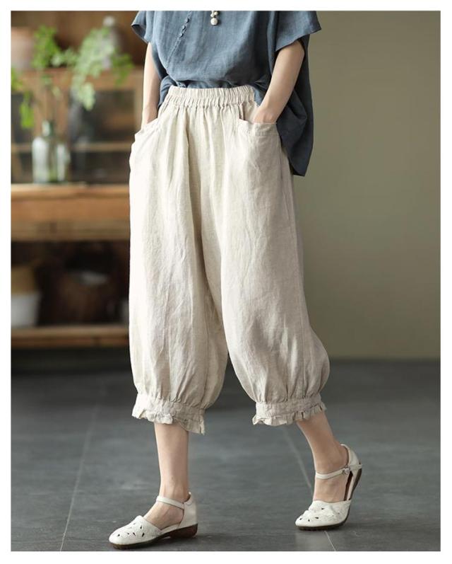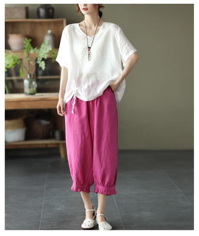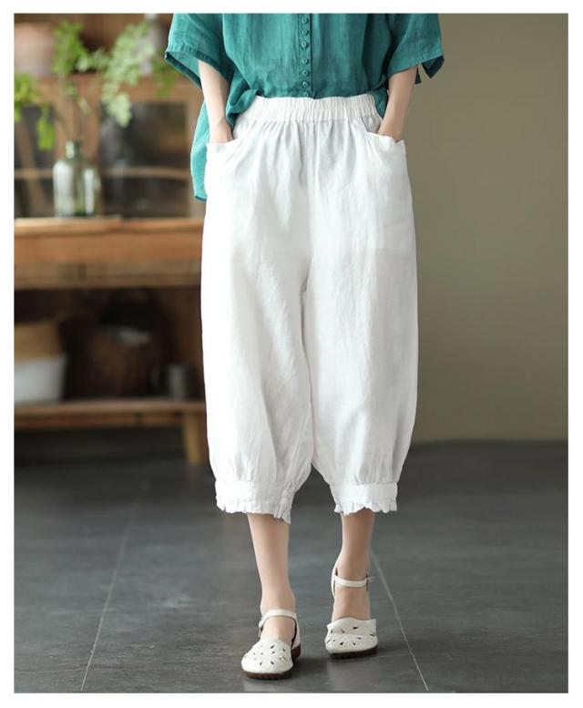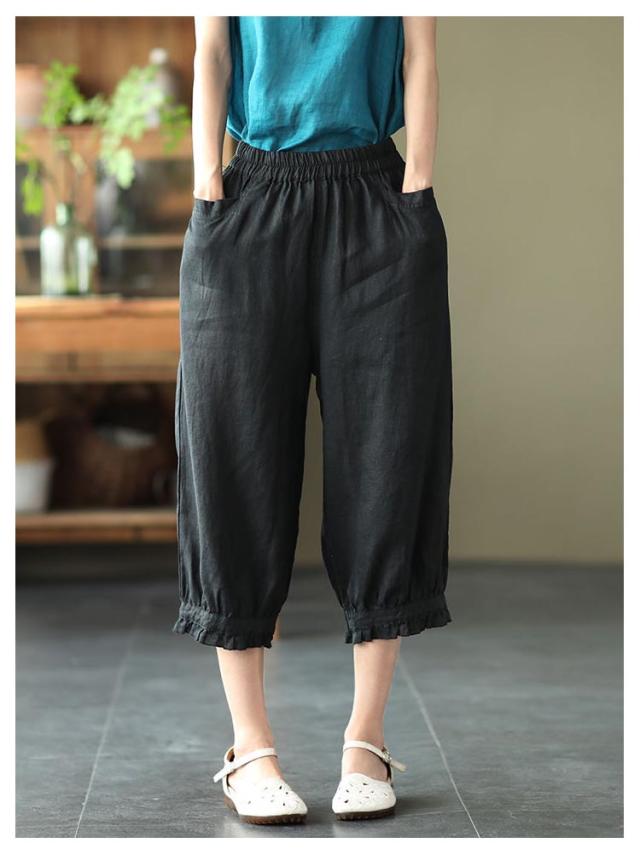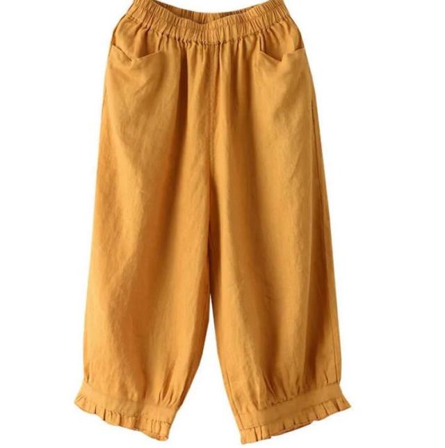 クロップドパンツ レディース サルエルパンツ 送料無料 七分丈 ワイドパンツ カジュアルパンツ 7分丈パンツ 薄ウエストゴム 裾フリル 薄手 夏用 春夏 シンプル 無地 体型カバー 楽チン