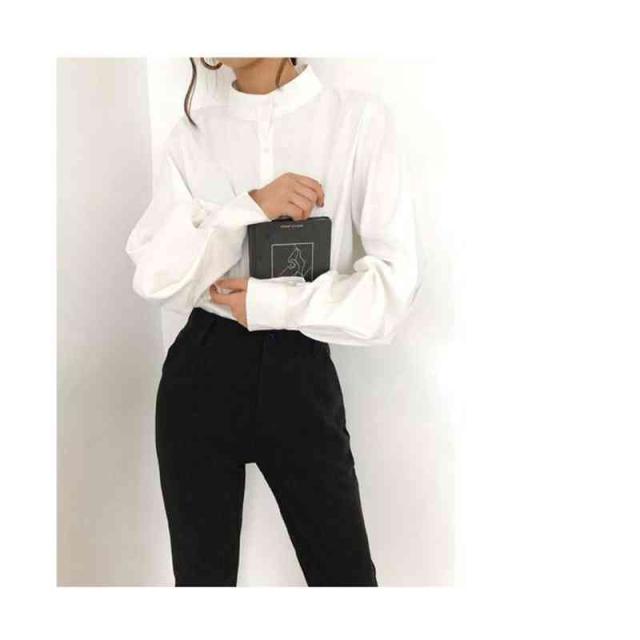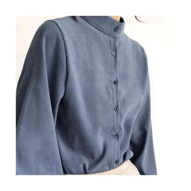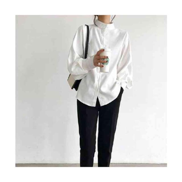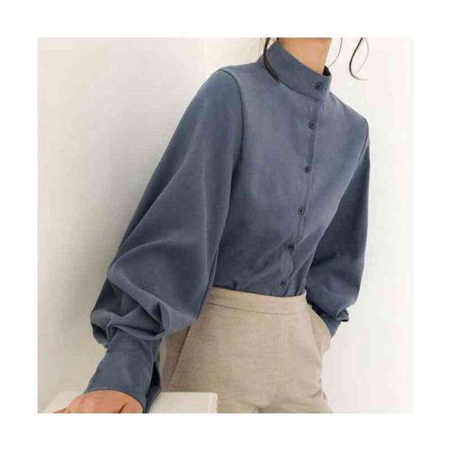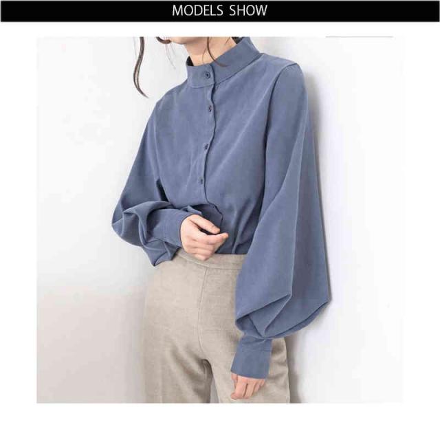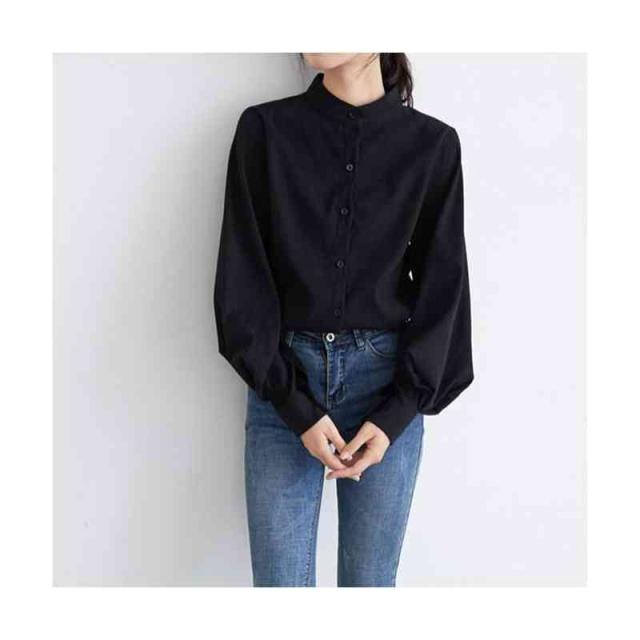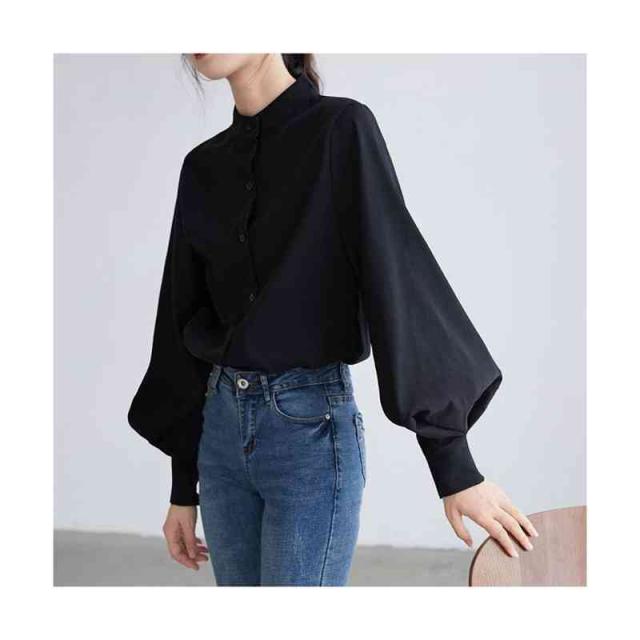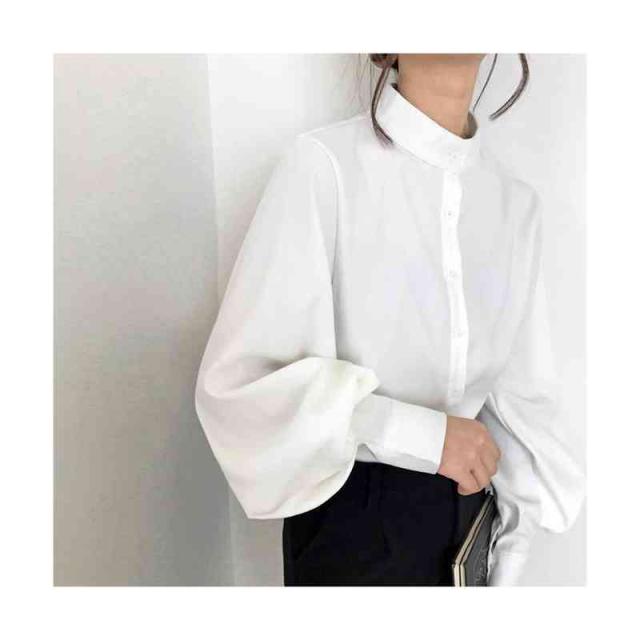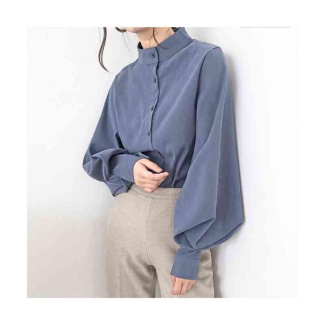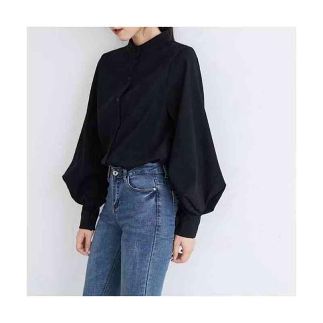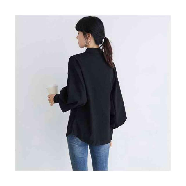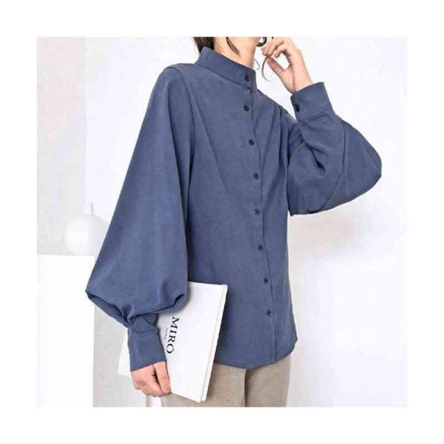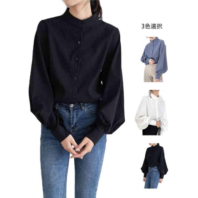 シャツブラウス 春夏秋 パフスリーブ ボリューム袖デザイン オフィス OL 長袖 トップス ゆったり フォーマル レディース ネイビー きれいめ 上品 おしゃれ バルーン袖 黒 白 無地 大人 トップス シャツ