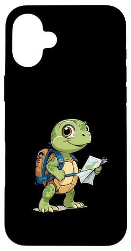 リュックと地図を持つカートゥーン風のかわいいカメ スマホケース IPHONE 16 PLUS 用
