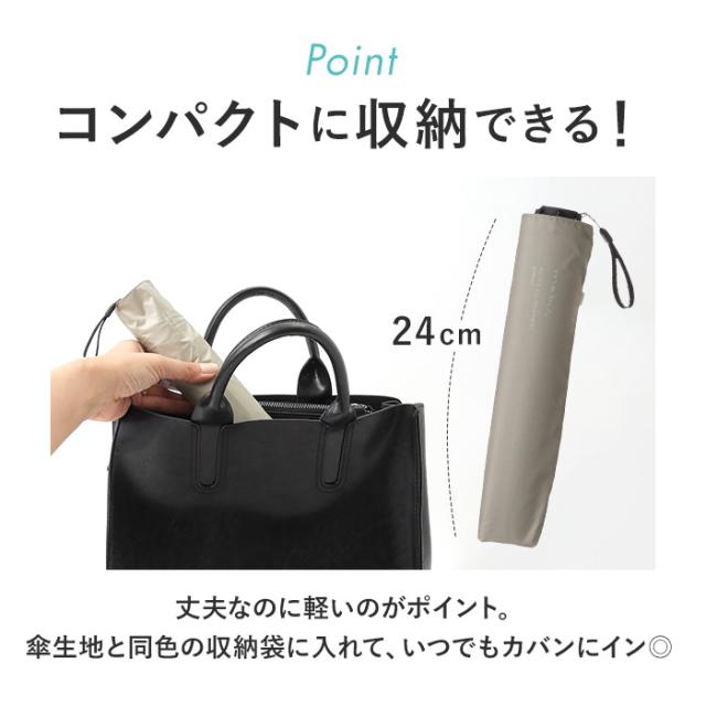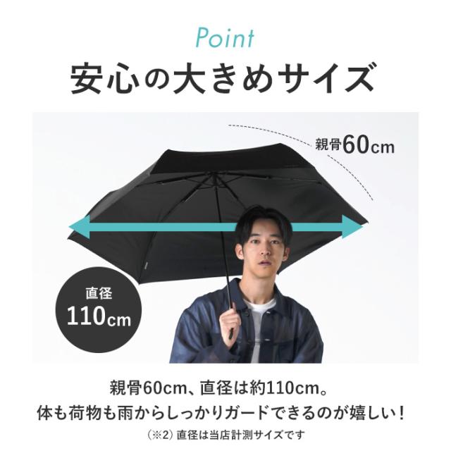 | サイズ | [親骨の長さ]約60cm/[直径]約110cm/[全長]約56cm [収納時の長さ]約24cm [収納時の幅]約6cm ※サイズは当店計測の実寸サイズです。実際の商品ならびにメーカー表記サイズとは多少の誤差が生じる場合がございます。あらかじめご了承ください。 |