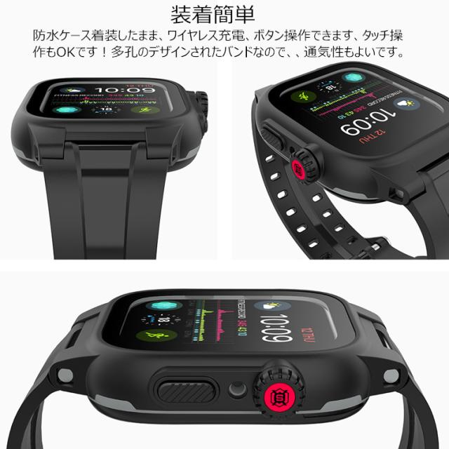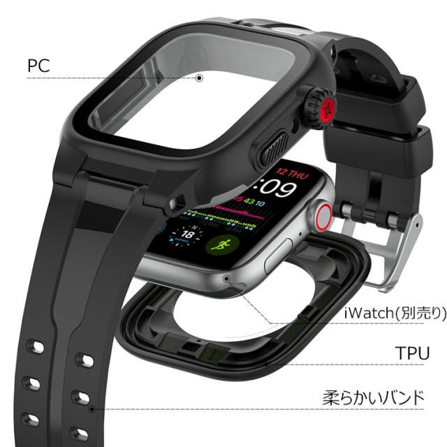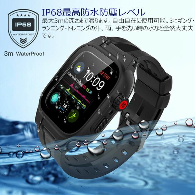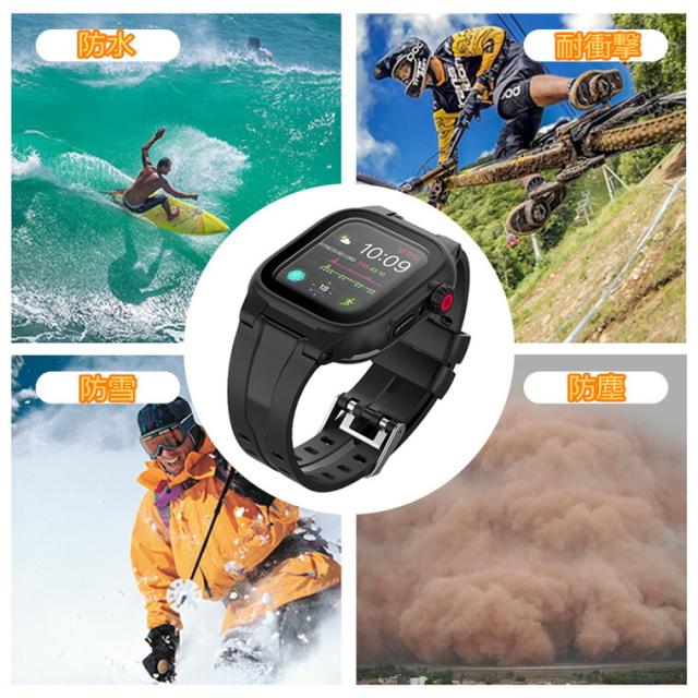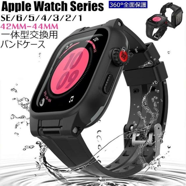 Apple Watch バンド カバー 防水 IP68完全防水 一体型 Apple Watch SE series 6 5 4 3 2 1 44mm 42mm ステンレス スポーツ 水泳 一体型 交換用バンド iwatch ベルト 腕時計バンド 耐衝撃 防塵 防雪 防汗 アップルウォッチ ケース 全面保護 防水ケース
