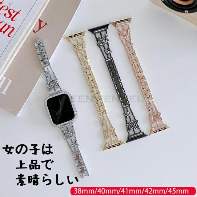 アップルウォッチ バンド レディース ス44mm 45mm アップルウォッチ バンド 42mm 41mm 40mm 38mm アップルウォッチ6 バンド アップルウォッチSE アップルウォッチ7 apple watch バンド ステンレス アップルウォッチ7 テンレス チェーン キラキラ アップルウォッチ バンド