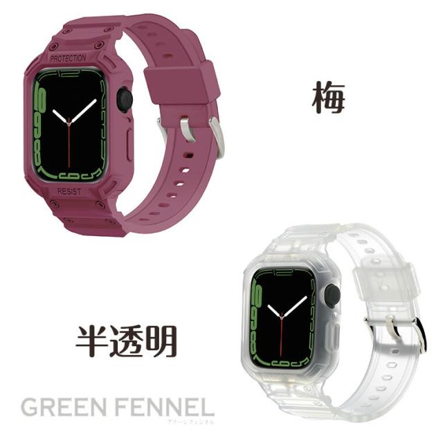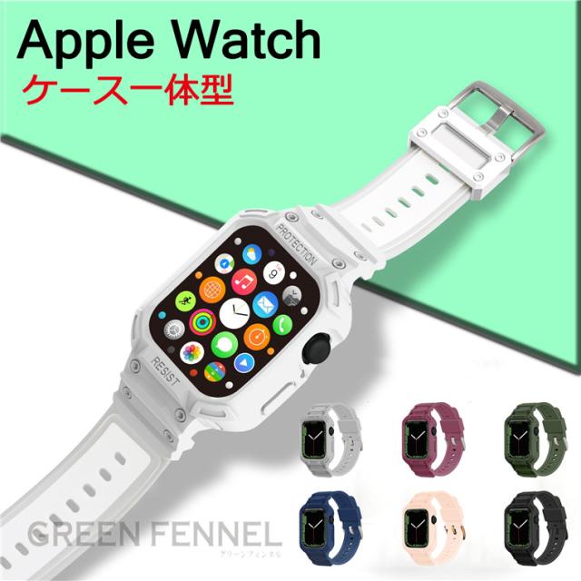 Apple Watch8 Apple Watch SE2022 バンド アップルウォッチ8 ベルト Apple Watch SE Apple Watch7 ベルト 一体型 ケース一体型 半透明バンド一体型 シンプル 交換用バンド 41mm 45mm 44mm 42mm 40mm 38mm 替えベルト 交換ベルト アップルウォッチバンド おしゃれ 傷防止