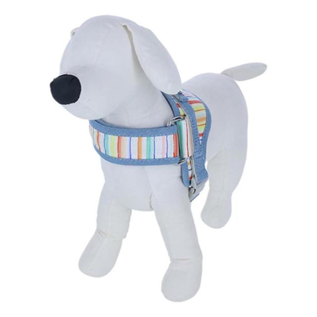 【どんなワンちゃんにも似合う、おしゃれでかわいいレインボーハーネス】首に通すだけ立ったまま着用ができる、とってもラクなハーネスが新登場。すぽっとラクに首に通して、カチッと装着するだけ付けるのに手間がかかる、ハーネスに慣れていない、足を通すのが苦手というようなお悩みを解決するハーネスです。レインボー×デニムライクなデザインでトレンドにとらわれず、オールシーズン活躍します