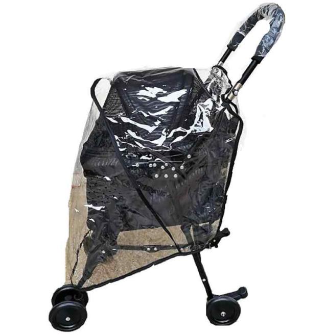 雨の日でもワンちゃんやネコちゃんと快適にお出かけペットカート用レインカバーです。