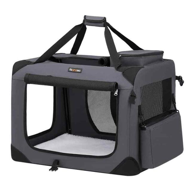 FEANDREA キャリーバッグ 中大型犬 折り畳める 犬用 ペットキャリー 室内用可 (70L x 52W x 52H cm, ダークグレー)