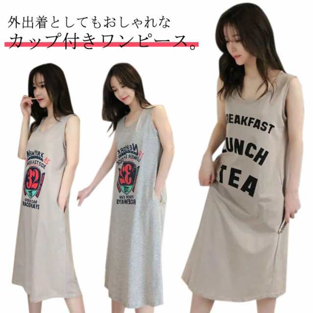 ルームウェア タンクワンピース パジャマ カップ付き カップ付きワンピース キャミワンピ レディース 20代 ルームワンピース ボーダー ワンピース ポケット付き 40代 ロングパンツワンピース 部屋着 綿コットン 30代 ひざ丈