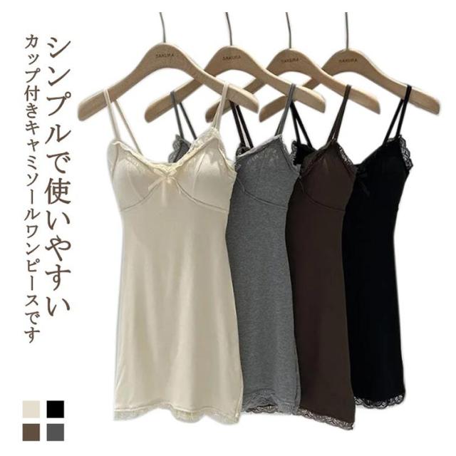 ワンピース インナードレス ワンピース ペチコート キャミワンピ スリップ 透け防止 カップ付き ブラカップ付き ルームウェア 透け防止 美シルエット 夏 キャミ 部屋着 ブラトップインナー