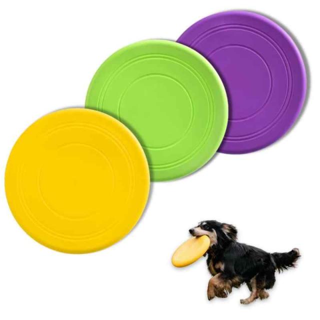 Neutral Zenith 犬用フリスビー 投げるおもちゃ 3個セット シリコン製 柔らかい ペットおもちゃ 運動不足解消 歯耐性ゴム 知能訓練 小型犬 中型犬 (グリーン・イエロー・パープル)