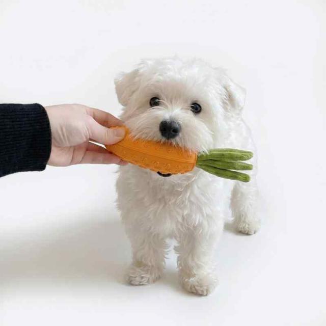 【ニンジンデザイン・噛み心地も抜群】犬おもちゃはニンジンの形をしており、可愛らしくてユニークなデザインです、ワンちゃんにとって噛みやすいサイズと形状で、長時間楽しむことができます。また、表面も凸凹しているので噛んで歯の汚れを落とすことができます。遊びながらデンタルケアもできるので、健康管理にも役立つ便利な犬おもちゃです。