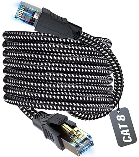 LANケーブル 7.5M CAT8準拠 メッシュ カテゴリー8 RJ45 コネクタ 超光速40Gbps / 2000MHz 編組ナイロン イーサネットケーブル 爪折れ防止 有線ランケーブル シールド モデム ルータ PS5 PS4 PS3 Xbox PCゲーム機 コンソール ラン ゲーム等に対応-黒