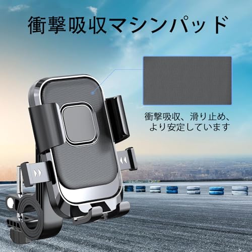 【安全でしっかりしている】ABSプラスチック、軽く耐久性、頑丈で衝撃的なオートバイの電話ホルダー。ホルダーの内側に網状のシリコンパッドが付き、衝撃による騒音を吸収するはもちろん、走行中に端末とホルダー間の摩擦により傷なども防止できます。ハンドルマウントに二つのブレ防止シリコンが付き、シリコンパッドの枚数を変更して、ハンドル径に合わせます。高速道路やでこぼこの山道では、安定しています。オートバイマウントホルダーは、非常に頑丈なオフロード、高速道路、および過酷な道路環境で複数の軍用グレードのテストを受けています。運転の安全性を確保します。