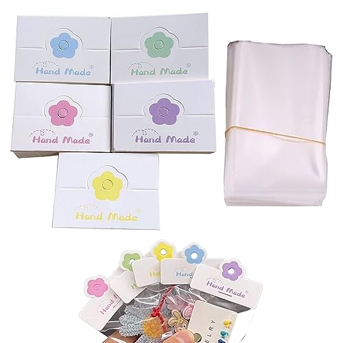 台紙 ラッピング 袋 アクセサリー 透明 OPP 袋付 9.5 x 6.4 cm ヘアアクセサリー用ヘアクリップ イヤリング ペンダント ディスプレイカード アクセサリー段ボールなど カードヘッダー付き 5色の花 100セット
