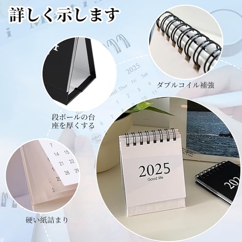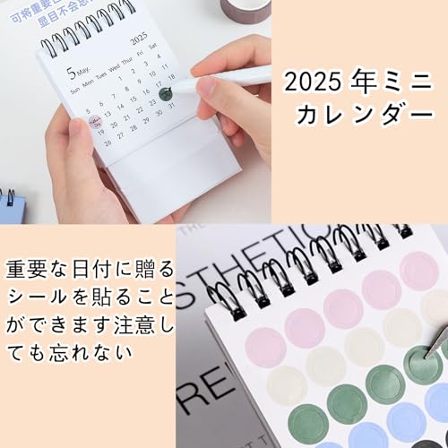 ミニカレンダー デスクカレンダー (2冊入り 2色) 2024から2025 卓上カレンダー シンプル 無地 おしゃれ オフィス 家庭用 学校用 実用性 折りたたみ可能 持ち運び便利
