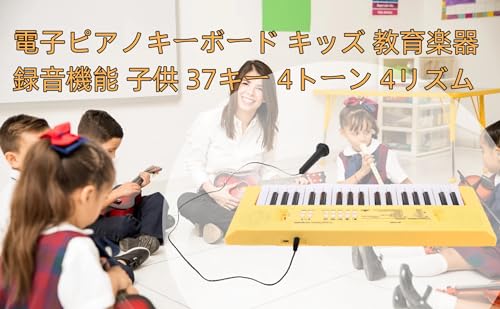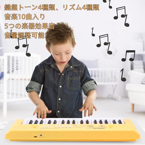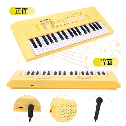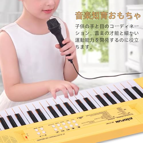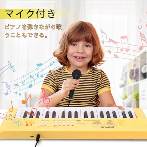 電子ピアノ キーボード キッズ 子供 入門 はじめてのピアノ 37キー キーボードピアノ 教育 楽器 おもちゃ マイク付き (黄)