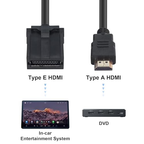 幅広い用途:HDMI Type Eプラグを持っているユーザーなら、パーソナルメディアプレーヤー、HDカメラ、その他のデジタルソースからHDビデオを簡単に楽しむことができます。 オーディオ機器とビデオ機器をロックして、HDビデオが過酷な道路状況下でシートバックまたはダッシュボードディスプレイに転送されるようにします。