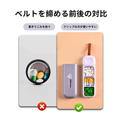 【手軽】この薬箱は軽量で、持ち運びが便利で、あまりスペースを取らない。大きなカバンはもちろん、小さなバッグやジャケットやパンツのポケットに入れてもいいです。持ち運びにとても便利です。毎日持ち歩きたい人にもかさばないピルケース。