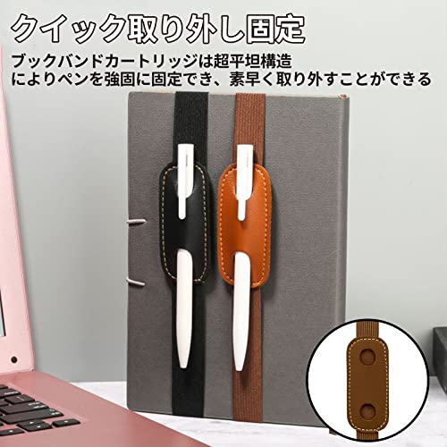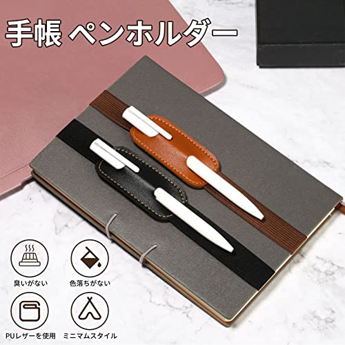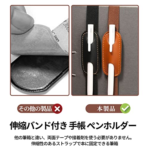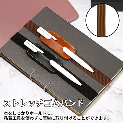 ブックバンドペンケース 手帳 ペンホルダー (2個セット) ペンループ ペンホルター ブックバンド 紛失防止 伸縮バンド付き a6-a5サイズ対応 puレザー ブラウン 長さ8cm 黒+茶
