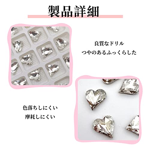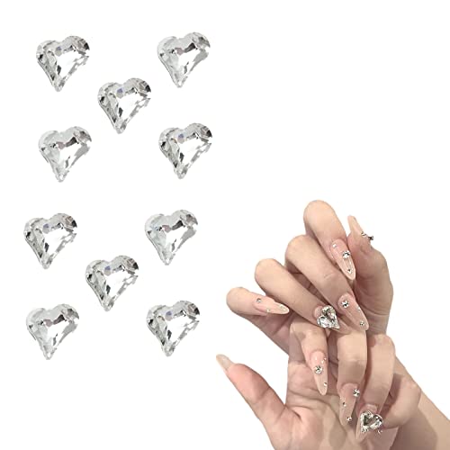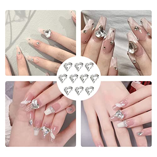 ネイル ガラスストーン ネイルクリスタル (10個セット) ジェムラインストーンネイル キュートハート型 大きめ ネイルストーン DIY ネイルを飾てと服装使用 透明 (透明)