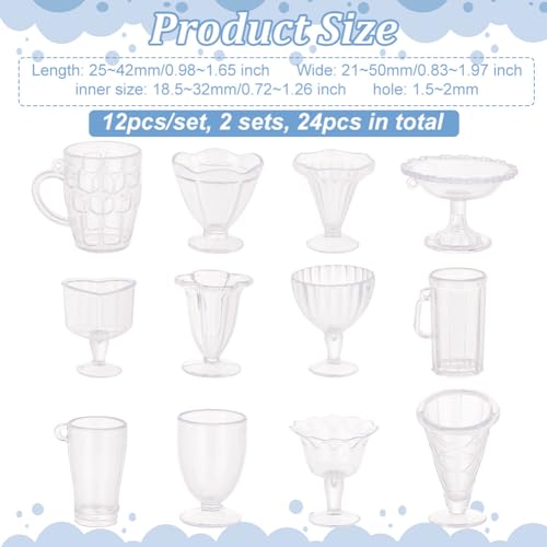 ミニチュアカップ ミニチュアプラスチックカップ 24個12種類 ミニチュアデザートカップ アクセサリー ミニチュア食器 ドリンクグラスモデル キッチン ミニハウス 装飾品 ミニカップ ドールハウス 小物