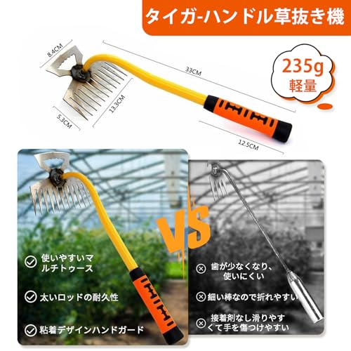 多機能精密:ワンセールガーデン除草ツールタイガーハンドル雑草抜き(11歯)、雑草ブラシステンレススチール、レーキ除草、この除草ツールは11歯のデザインで、根を正確に取り除くことができます。