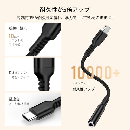 タイプc イヤホン ジャック 変換アダプタ USB C 3.5mm イヤホン 変換ケーブル iPhone 16 イヤホン ヘッドホンアダプターType C 3.5mm 変換 通話対応 iPhone16 / 15 / iPadなど対応 0.18m