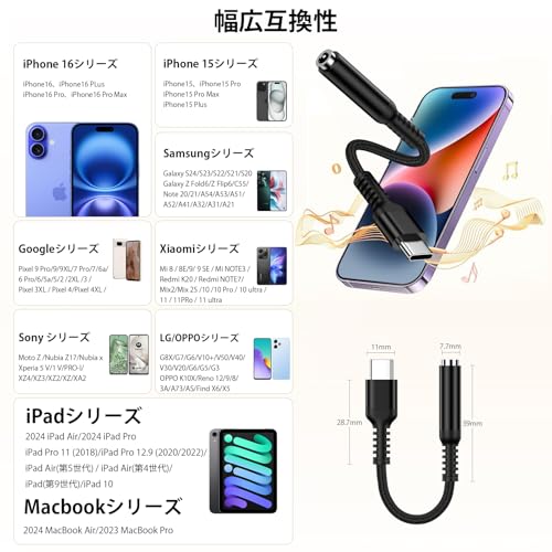 【幅広い互換性】このType C-3.5mm 変換アダプタはType Cポートがを備えるデバイスに対応できます。例えiPhone16E/16//iPhone15/iPad Pro/MacBook/Glaxy/Huawei/Google Pixel/OnePlusやPS4/PS5などに適用。MAC OS、IOS、Androidのシステムに対応でき、幅広い互換性があります。
