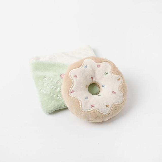 【ハート型がかわいいドーナツおもちゃ】ハート型のカラートッピングスプレーのような刺繍がポイントの、カラフルで美味しそうなドーナツデザインおもちゃの登場ですおもちゃの中には喜ぶこと間違いなしなカシャカシャ音がなる仕様と鳴き笛入り小型犬の愛犬ちゃんにも咥えやすいサイズ感で遊びやすいおもちゃです。