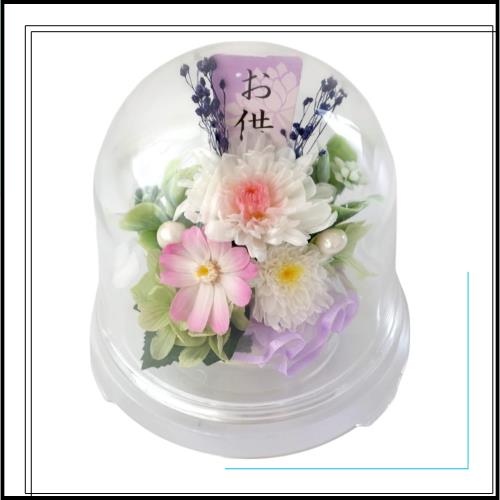 花由 お供え 仏花 プリザーブドフラワー クリアドーム アレンジメント 想花 桃ver