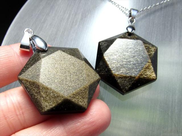 4A ゴールデンシャインオブシディアン 六芒星型 ペンダントトップ 1個売り サイズ:縦約30mm-35mm前後 重さ10g-15g前後 カットの美しい六芒星 財運アップ 魔除け・厄除けの石 黒曜石 つやつやブラックに浮かぶ黄金のシラー メキシコ産 パワーストーン 天然石