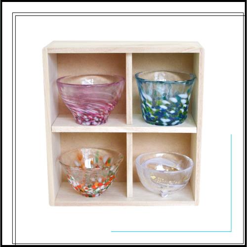 日本の伝統工芸「津軽びいどろ」の盃 四季折々の豊かな自然の情景を色ガラスで表現した季節の移ろいを楽しめる盃セット 盃としてのご使用のほか、小鉢などにも。食卓を華やかに彩ります。 贈り物にもピッタリ。