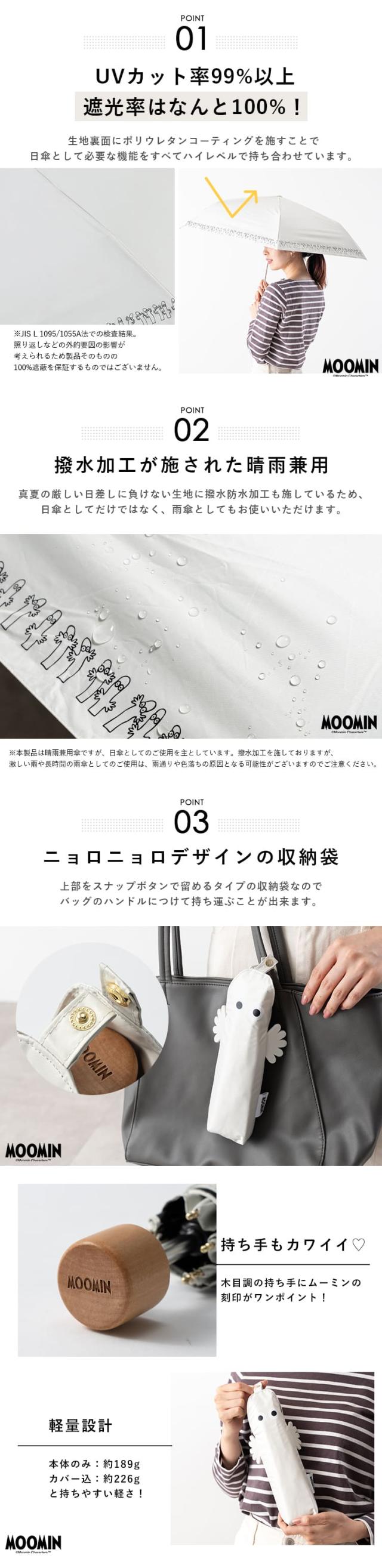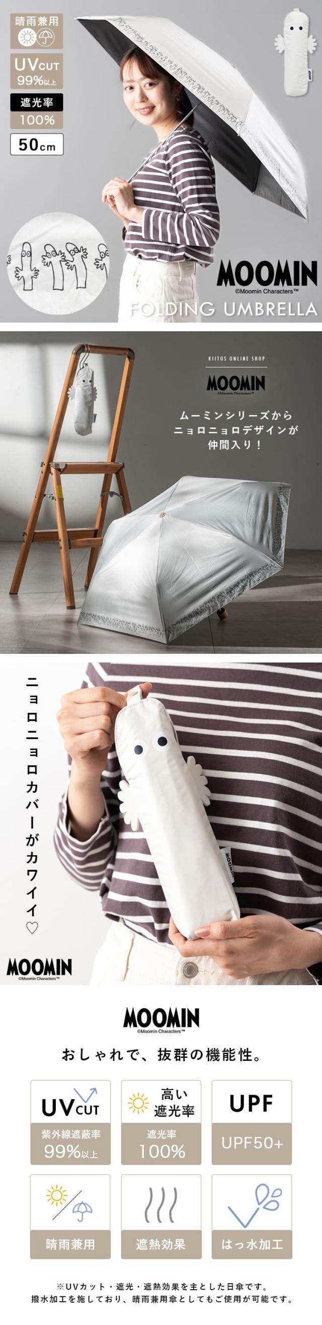 日傘 折りたたみ 軽量 50cm 完全遮光100% UV 晴雨兼用 ブランド MOOMIN ムーミン ニョロニョロ ポーチ付き 遮熱 撥水加工 upf50+ かわいい おしゃれ 日焼け対策 紫外線対策 6本骨 プレゼント ギフト