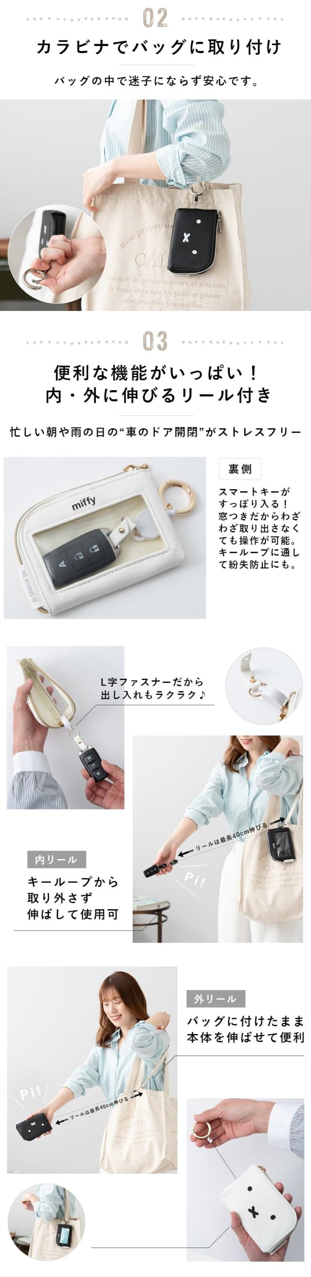 キーケース スマートキー 窓付き レディース リール付き ミッフィー miffy パスケース 定期入れ カード 免許証 かわいい おしゃれ ブランド 大人 通勤 通学 プレゼント ギフト