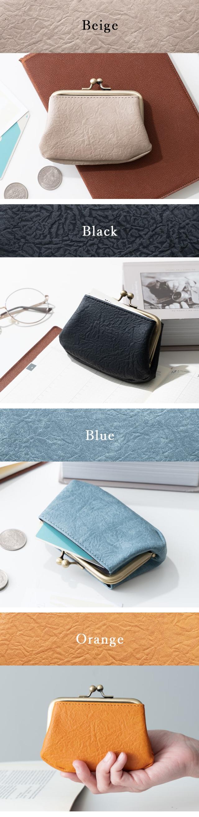 和紙のような独特の風合いの合成皮革を使用したがま口コインケース。