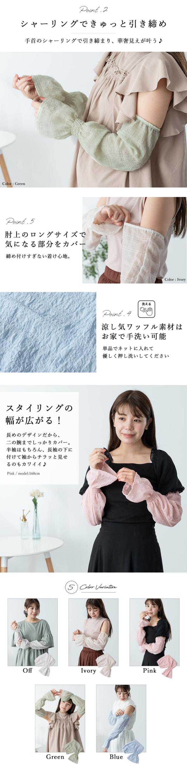 二の腕と手首にゴムが入っているのでずれにくいのも嬉しい。