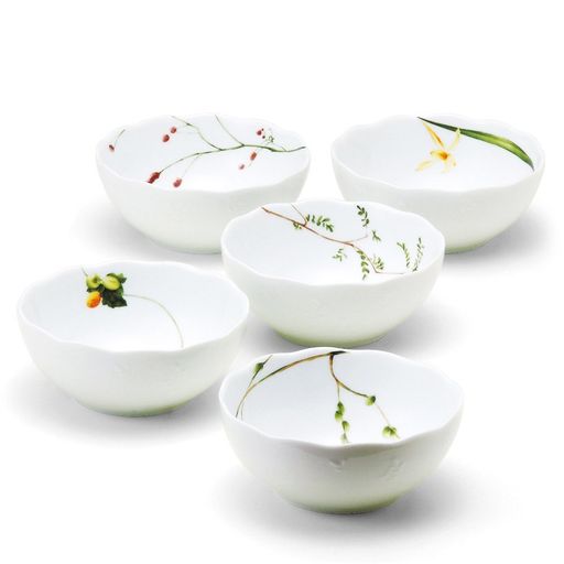 NARUMI(ナルミ) ボウル 皿 セット 里花暦(さとはなごよみ) 径13CM グリーン 花柄 5柄セット かわいい 結婚祝い 電子レンジ温め対応 日本製 ギフト箱入り 40912-32841