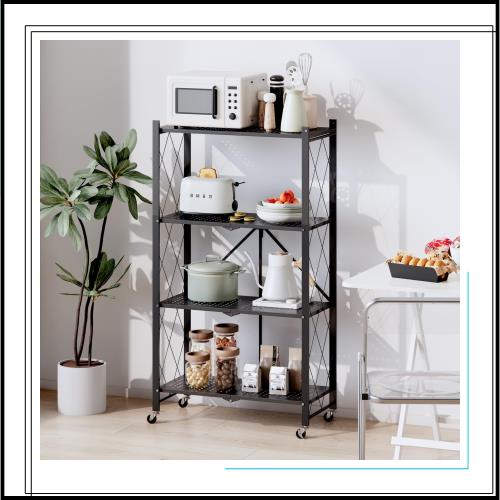 ANDWINT スチールラック メタルラック 幅70 ブラック 4段 完成品 ラック 棚 キャスター付き 折り畳みラック キッチンラック 収納ラック