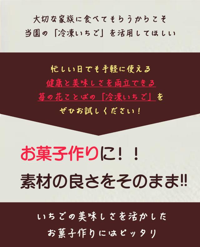新潟県産「越後姫」を贅沢に使った冷凍いちごです。