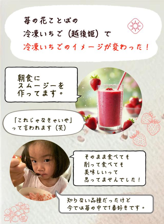 おやつやスイーツに安心!無添加農園直送越後姫 冷凍いちご 1kg ハウスに植えてから化学農薬を使わずに育てたいちご 国産冷凍ストロベリー/冷凍フルーツ/冷凍果実/冷凍デザート/いちごスムージー/スイーツ素材/子供のおやつ/妊婦のおやつ/つわり対策/家庭用*冷凍苺