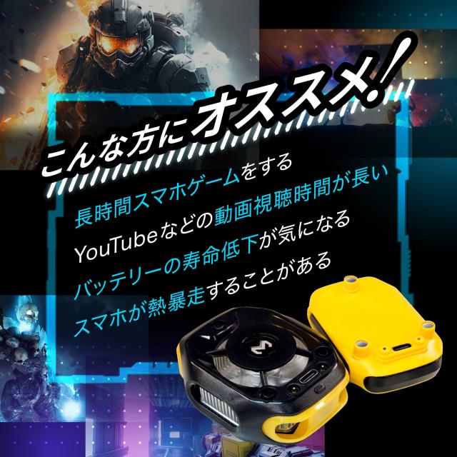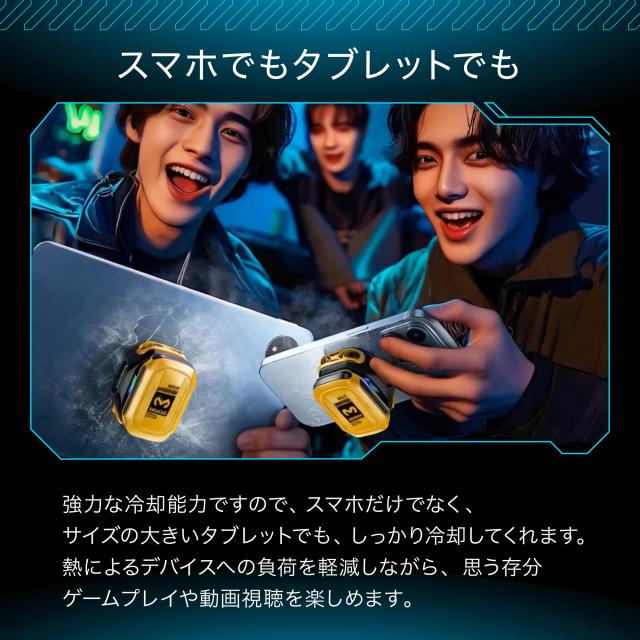 熱くなるスマホやタブレットをクールダウン!長時間のゲームプレイや動画視聴による発熱からスマホを守るポータブルスマホクーラー。