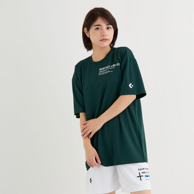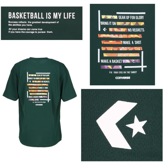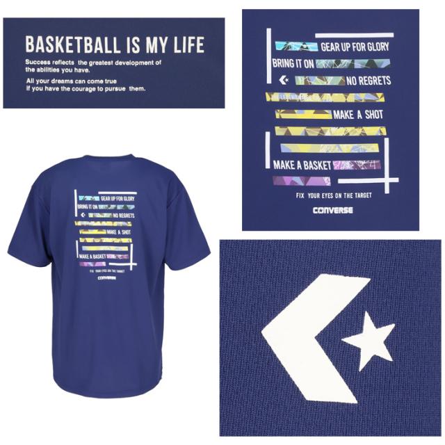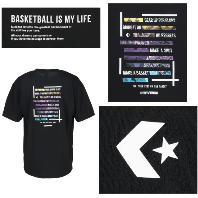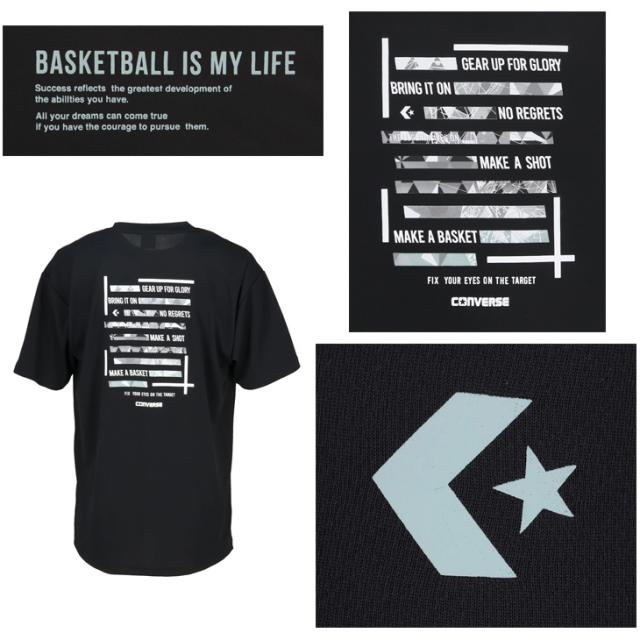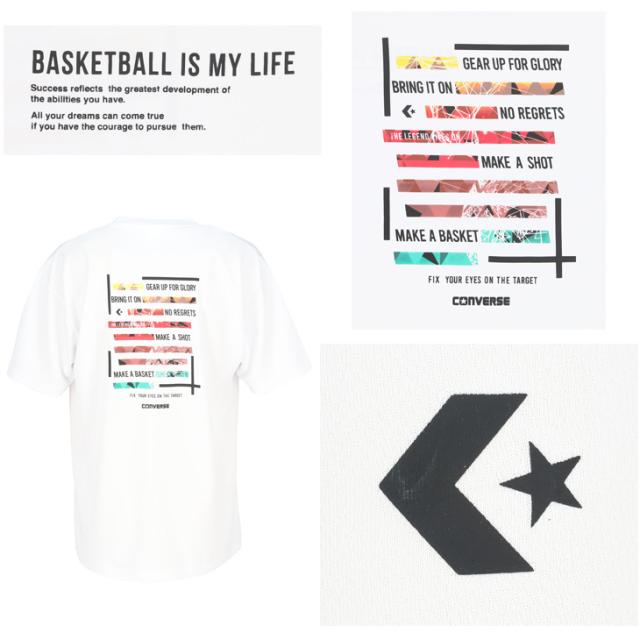 コンバース 半袖 Tシャツ メンズ レディース CONVERSE プリントTシャツ バスケットボールウェア 吸汗速乾 スポーツウエア バックプリント プラクティスシャツ トップス バスケシャツ 練習着 部活 スポーツTシャツ 服 ブランド アパレル/CB252363
