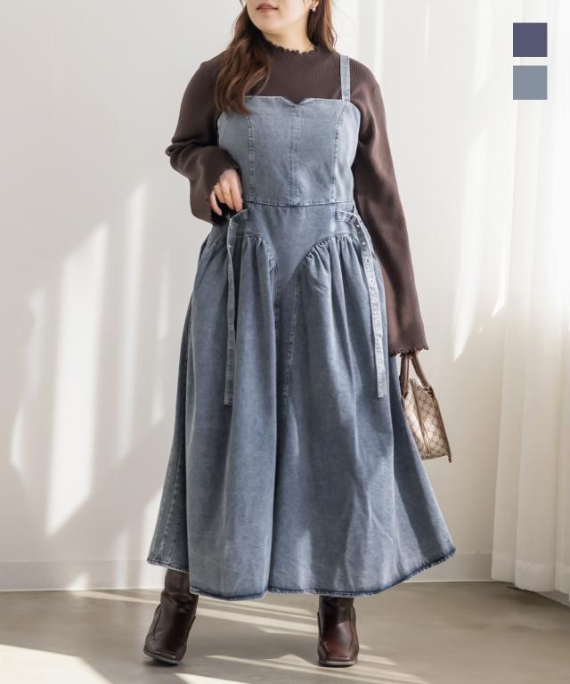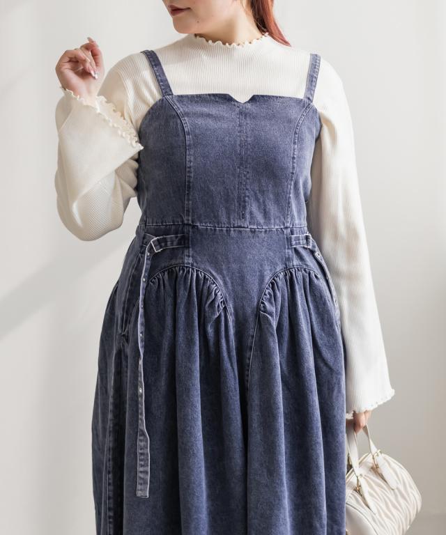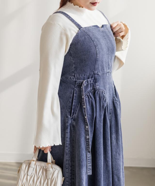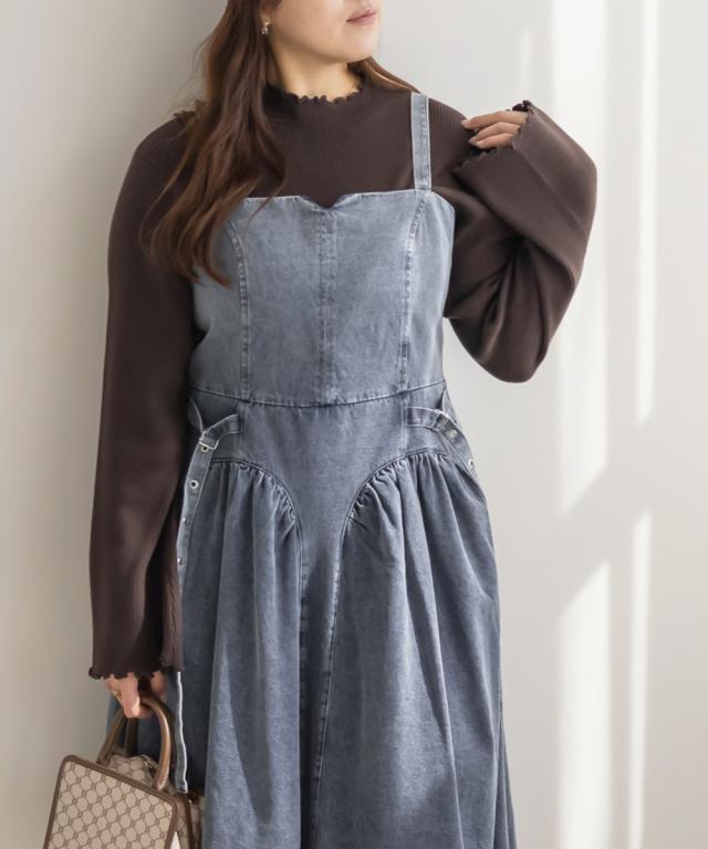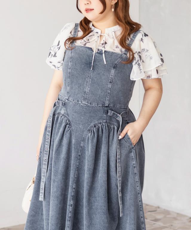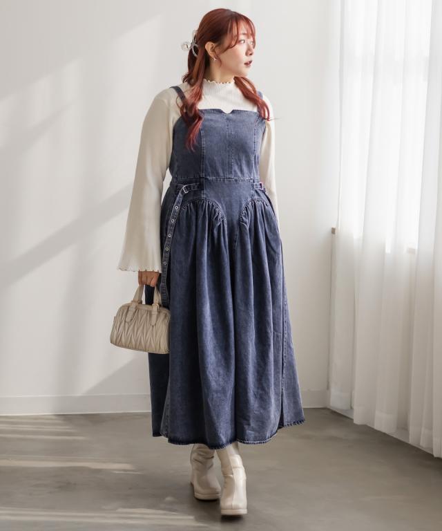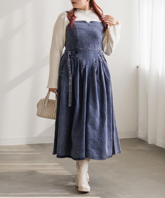 | 3Lを着てちょうどいいサイズでした。着心地は後ゴムになっているので窮屈感はありませんでした◎上半身部分はすっきりとしていながら、スカート部分は綺麗に広がるからフィット&フレアですっきり着やせできます!しっかりとしたデニム生地なのでボディラインを拾わずに細みえできます!凝ったデザインでとっても高見えしてくれるのでおしゃれ感のあるワンピースです。ケミカルデニムだから甘くなりすぎず、様々なスタイリングが楽しめます♪インナーを変えてオールシーズン着まわせるのもポイントです。 |