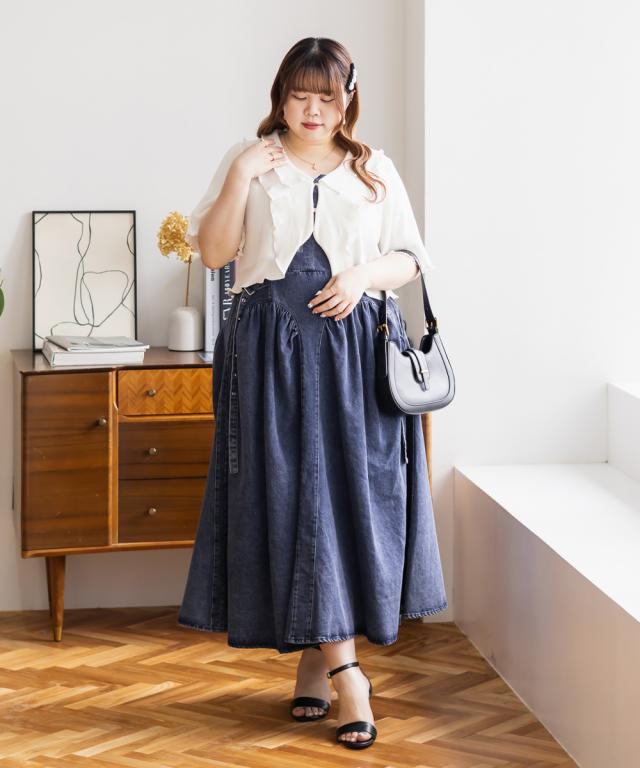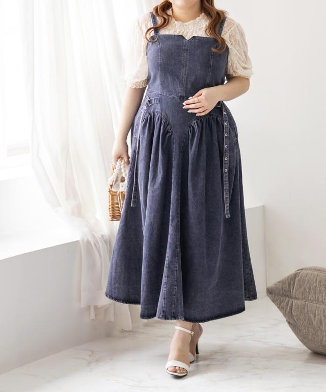大きいサイズ/レディース/LL/3L/4L/CLETTEオリジナル★サイドベルトデニムジャンスカ