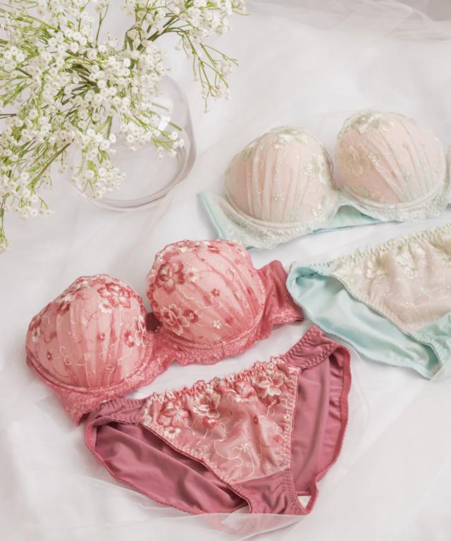 大きいサイズ/レディース/D85/D90/D95/E85/E90/E95/F85/F90/F95/G85/G90/G95/脇高プチフラワーレースブラジャー&ショーツセット
